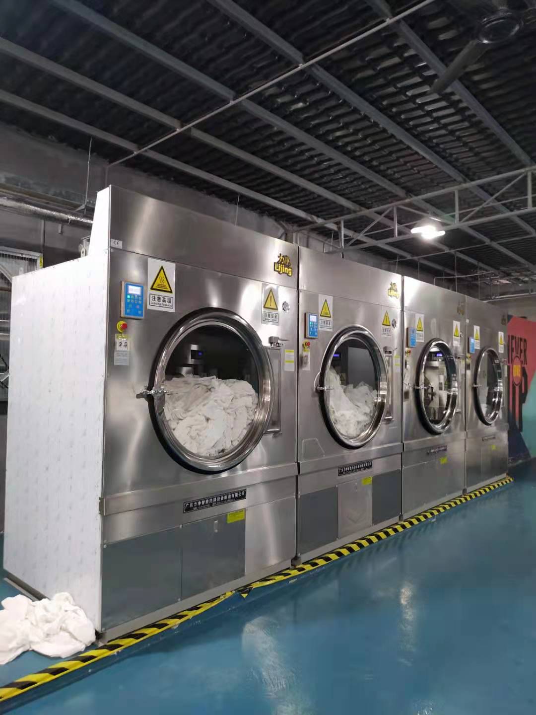 一、全自動工業(yè)洗衣機和全自動工業(yè)烘干機。這兩種機型是目前工廠工作服洗衣房最常見的設(shè)備組合。省時省力,快捷方便,特別適用于洗滌量大的批量洗滌廠。